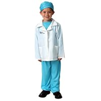 Our classic medical costume is fun for everyday play. Your little hero will enjoy hours of fun.Jersey knit blue long-sleeved shirt, pants with elastic waistband. White lab coat with screenprinted Medical Doctor emblem. Blue hat included.100% polyester. Hand wash, lay flat to dry.Imported.