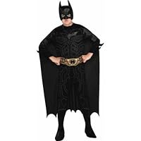 Rubies The Dark Knight - Batman NON-RETURNABLEFrom this summer's hottest blockbuster movie comes the hottest costume you'll see this Halloween - The Dark Knight himself, Batman! Battle The Joker in Gotham City, then go out trick or treating. Your neighbors are bound to give their best candy to a hero like you! Costume includes jumpsuit with attached boot tops, mask, cape, and belt. Available in Small, Medium, and Large:Small - Fits children measuring 44-48 inches in height with 25-26 inch waistMedium - Fits children measuring 50-54 inches in height with 27-30 inch waistLarge - Fits children measuring 56-60 inches in height with 31-34 inch waist