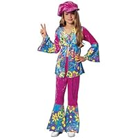 Groovy and far out, this flower power girl epitomizes the free spirit of the 60's. Can you dig it? Costume features a colorful flower printed velveteen blouse and pants. Also includes a velveteen cap.. A great Halloween costume!