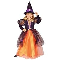 This is the Pretty Witch Toddler Costume by Rubie's Costumes. This great witch costume features a stunning orange, purple, and black design and includes a dress and a matching witch hat.Shoes are not included.