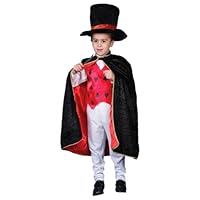 The charm of this costume is no illusion. This costume features mid-length "satin"-lined cape, soft top hat, vest, and magic wand.