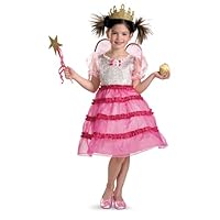 Product includes dress with character cameo, wings, gold glitter wand and tiara (cupcake not included).