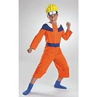 Naruto Costume includes Orange, blue and white jumpsuit with zipper front and character vinyl headpiece. This officially licensed Naruto (tm) Costume is available in child sizes Small (4-6) and Large (10-12).