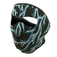 For those occasions when your face needs to be protected from the dashing winds and extreme cold, we offer you this reversible, full coverage, blue lightning face mask of polyester. With ample eye opening, shaped nose with open tip, and holes at the mouth, the thick yet flexible neoprene will form to your face to provide you with a comfortable fit. The mask is secured with a wide adjustable straped strap at the back, with a print of shocking ice blue lightning streaks on one side, and solid black when reversed, for 2 different looks. Ideal for snow sports, the cushiony featherweight material is weather tested and engineered to keep the harmful elements of cold weather at bay.Made of 100% polyester. Face measures 9 high. Reversible. Hand Washable. Imported.ONE SIZE fits most.