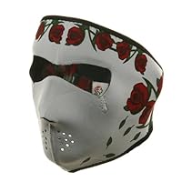 For those occasions when you need partial face protection from the dashing winds and extreme cold, we offer you this reversible, white mask with red roses of polyester and neoprene. With shaped nose with open tip, and holes at the mouth, the thick yet flexible material will form to your face and over your ears to provide you with a comfortable fit. The mask is secured with a wide adjustable strap at the back, with a solid black on side and when reversed. Ideal for snow sports, the cushiony featherweight material is weather tested and engineered to keep the harmful elements of cold weather at bay.Made of 100% polyester. ONE SIZE fits most with strap closure.Face measures 9 inches high, 24 inches long. Reversible. Hand Washable.Imported.